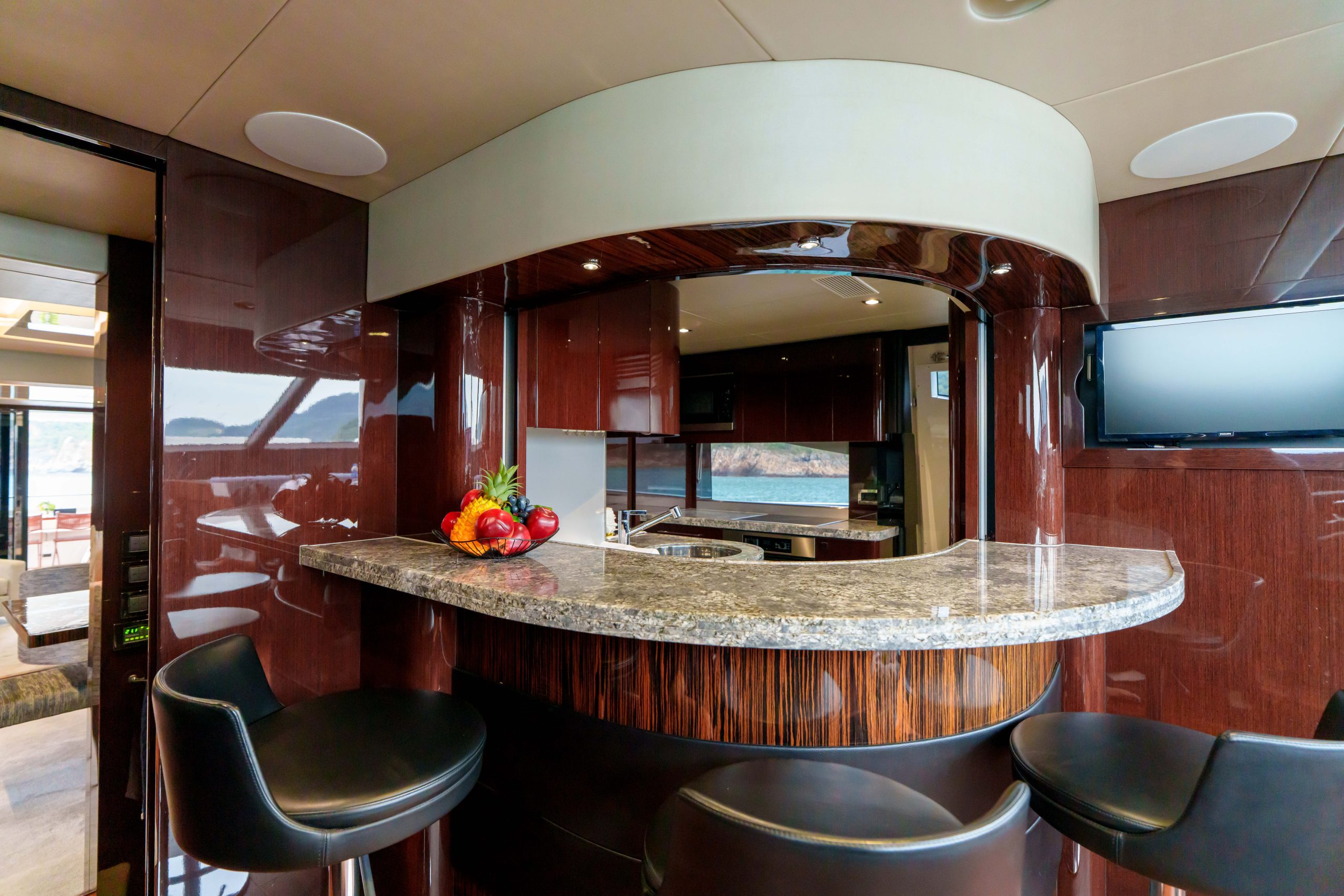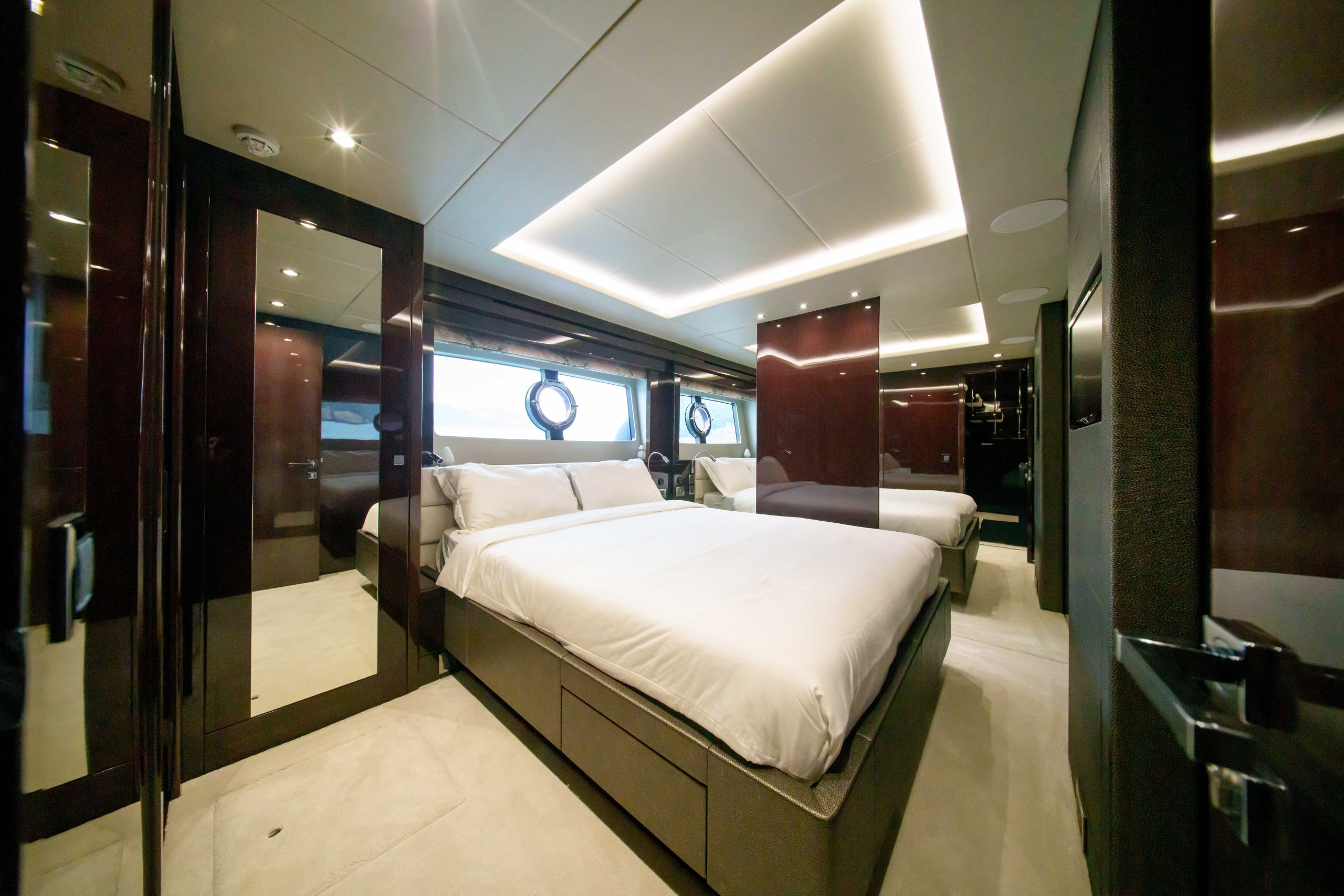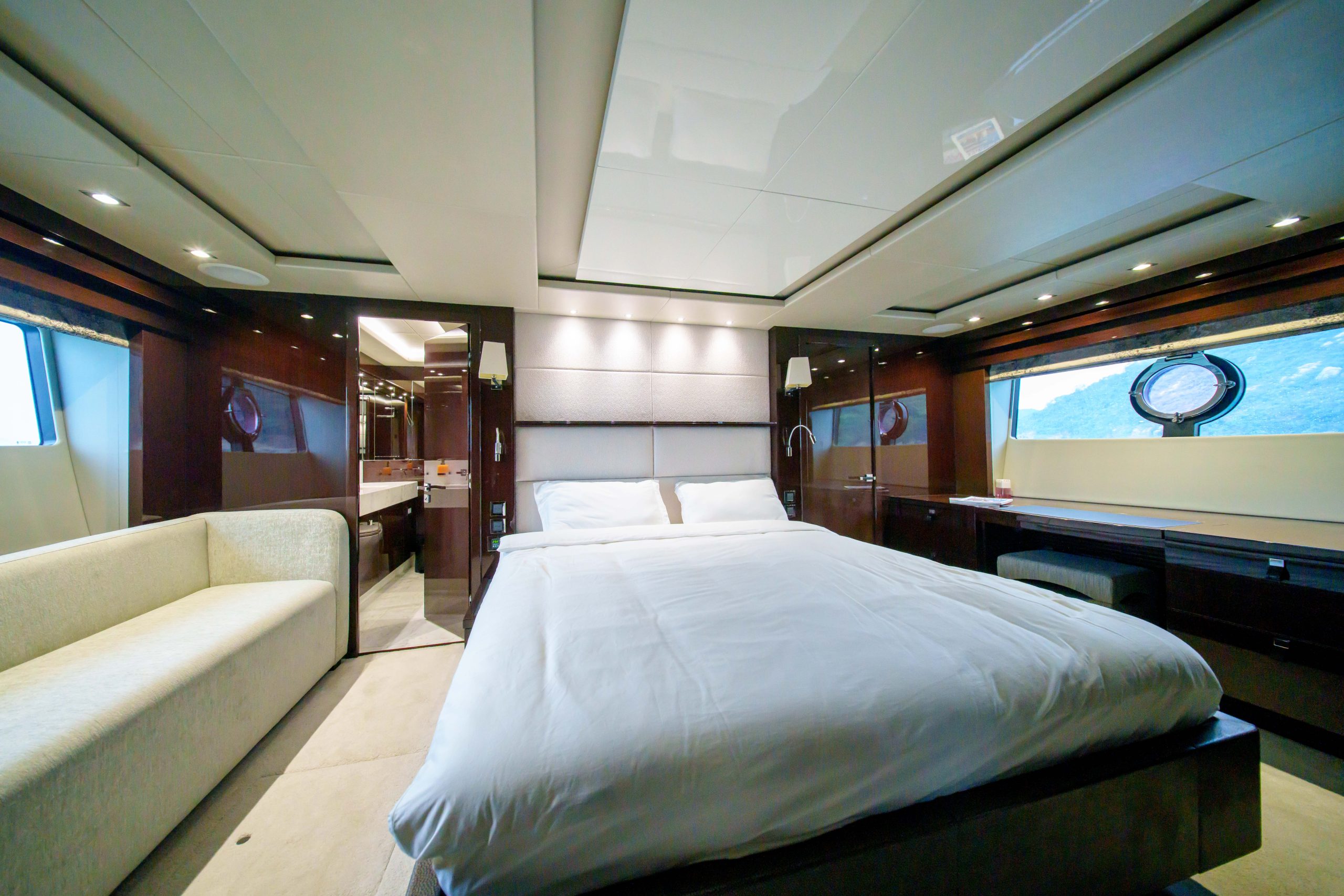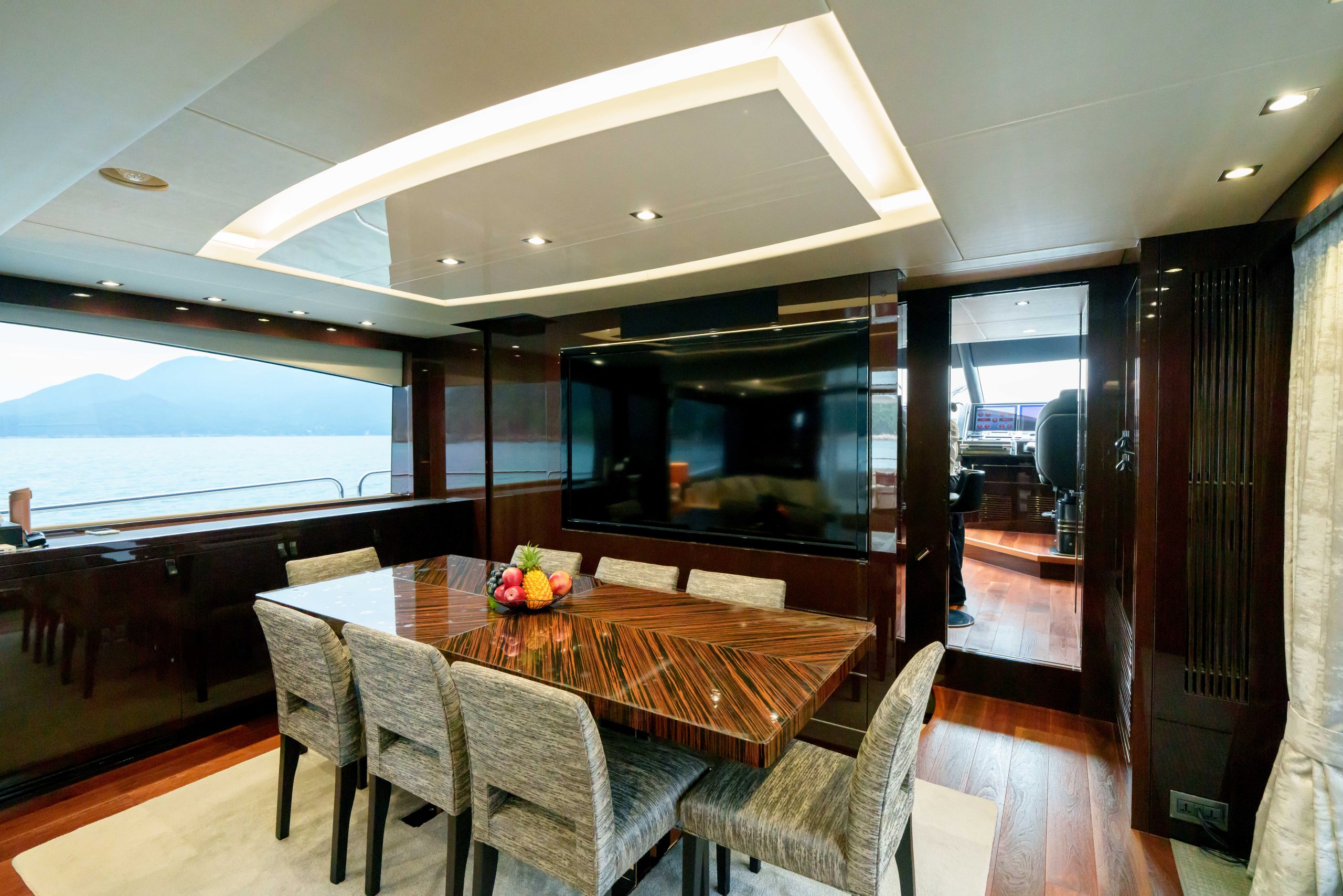 British built, the Sunseeker 86 is a luxurious and spacious flybridge yacht. She offers 4 cabins and can entertain a group up to 40 guests with high comfort. She also has a crew of 3 who are always available at your service. We also offer added services such as catering, stewardesses and more upon request.